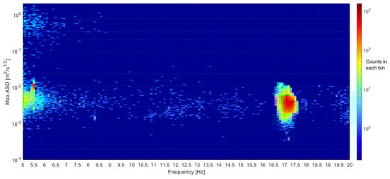 k was checked. Over 95% of the maximum ASD values found for any frequency in each 20–s period are in the range