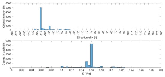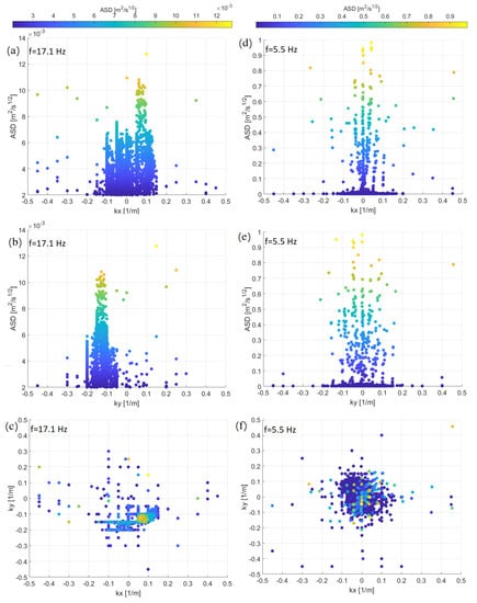Section 3.3 coordinates of each max(ASD) in the wave–vector space, for particular frequencies and 20-s periods of the measurement, were found. Results are shown in