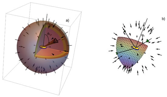 which determines the accretion rate for given boundary conditions and mass of the SMBH. In this expression, is the solid angle covered by the streamline at the polar angle (see Figure 1). When (full solid angle), Equation (24) reduces to the classical accretion parameter. However, for a -dependent force . This dependence is important only for the final calculation of , which is fixed once the value of is chosen. Replacing from Equation (23) into Equation (22), the radiative-radial Bondi problem reduces to solving the equation