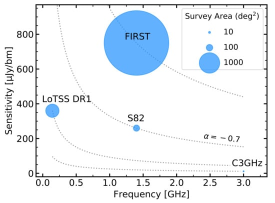 - Becker, R.H.; White, R.L.; Helfand, D.J. The FIRST Survey: Faint Images of the Radio Sky at Twenty Centimeters. Astrophys. J. 1995, 450, 559. [Google Scholar] [CrossRef]