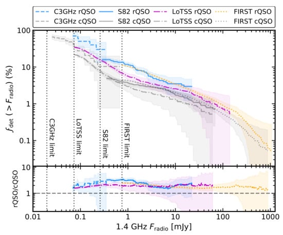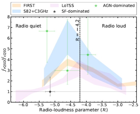 | 3 | Defined as the radio-detection fraction of the rQSOs, divided by the radio-detection fraction of the cQSOs. |