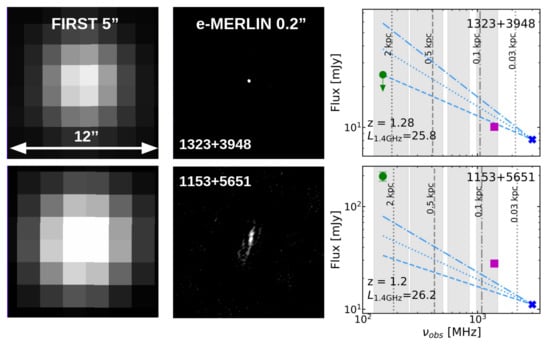 - Condon, J.J.; Kellermann, K.I.; Kimball, A.E.; Ivezić, Ž.; Perley, R.A. Active Galactic Nucleus and Starburst Radio Emission from Optically Selected Quasi-stellar Objects. Astron. J. 2013, 768, 37. [Google Scholar] [CrossRef]
