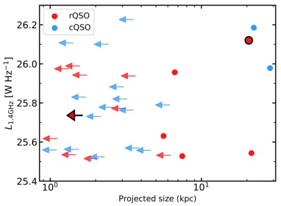 - Rosario, D.J.; Alexander, D.M.; Moldon, J.; Klindt, L.; Thomson, A.P.; Morabito, L.; Fawcett, V.A.; Harrison, C.M. Fundamental differences in the radio properties of red and blue quasars: Kiloparsec-scale structures revealed by e-MERLIN. Mon. Not. R. Astron. Soc. 2021, 505, 5283–5300. [Google Scholar] [CrossRef]