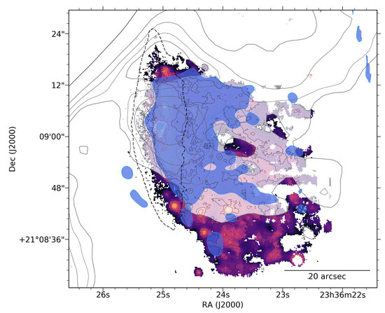 - McDonald, M.; Veilleux, S.; Rupke, D.S.N. Optical Spectroscopy of Halpha Filaments in Cool Core Clusters: Kinematics, Reddening, and Sources Of Ionization. Astrophys. J. 2012, 746, 153. [Google Scholar] [CrossRef]