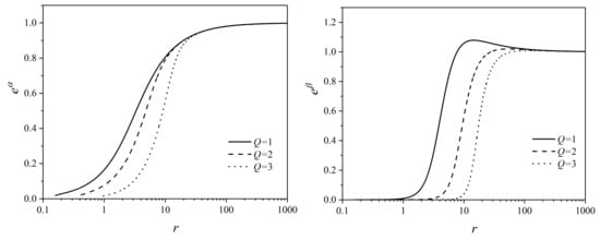 Therefore, function is monotonically increasing. On account of conditions (7) and (8), it is strictly negative for large r; therefore it cannot be equal to zero and so is . Whence we infer that functions do not change their signs.