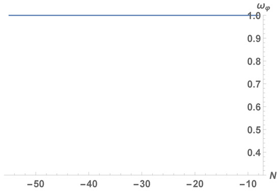 Now we want to understand the evolution of the quintessential inflation models after inflation, which only depends on the tail of the potential. We focus on the Peebles–Vilenkin one, and for that case, inflation ends when , which occurs for . By taking into account that an alternative expression of this slow-roll parameter is , we conclude that at the end of inflation, the effective equation of state (EoS) parameter, namely, , satisfies