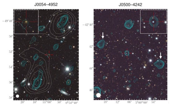 - Norris, R.P.; Marvil, J.; Collier, J.D.; Kapińska, A.D.; O’Brien, A.N.; Rudnick, L.; Andernach, H.; Asorey, J.; Brown, M.J.I.; Brüggen, M.; et al. The Evolutionary Map of the Universe pilot survey. Publ. Astron. Soc. Aust. 2021, 38, e046. [Google Scholar] [CrossRef]