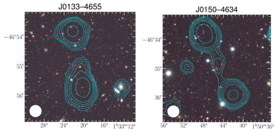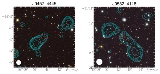 - Jones, P.A.; McAdam, W.B. The Structure of Southern Extragalactic Radio Sources. Astrophys. J. Suppl. 1992, 80, 137. [Google Scholar] [CrossRef]