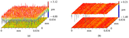 As the test runs, the surface of GCr15 changed due to plastic deformation and wear. The 3D topographies before and after the experiment for one GCr15 sample are shown in Figure 11. The roughness within the contact changes significantly and ignoring these changes might result in a loss of accuracy. However, it is still challenging to simulate topography change caused by wear due to limited information about the complicated material wear process. Moreover, if the samples are taken out after each speed to get accurate surface topography, it may introduce errors in the assembly and disassembly processes.