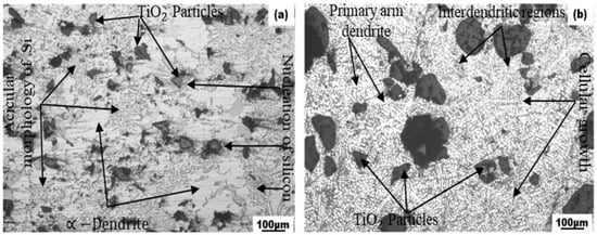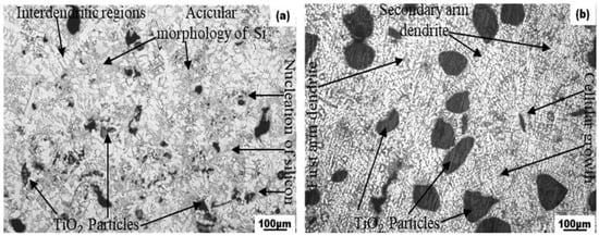 - Fine size reinforced particles are responsible for the delayed cooling rate near the particles, which restricted the diffusion within the melt and it served as a center for the development of silicon with fuzzy morphological changes.