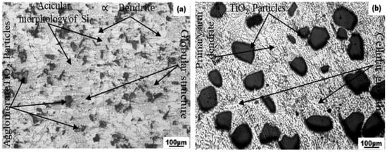 - Prabhu, S.R.; Shettigar, A.K.; Herbert, M.A.; Rao, S.S. Microstructure and mechanical properties of rutile-reinforced AA6061 matrix composites produced via stir casting process. Trans. Nonferr. Met. Soc. China 2019, 29, 2229–2236. [Google Scholar] [CrossRef]