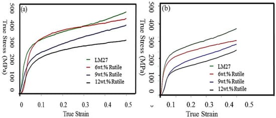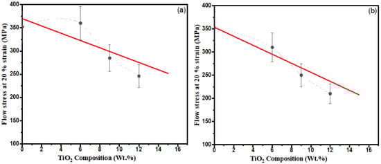| Test Series | Reinforced Particle Size (µm) | Rutile Concentration (%) | Flow Stress at 20% Strain (MPa) |