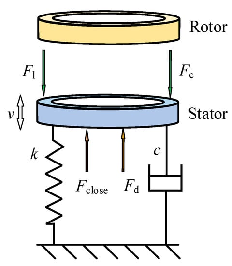 where m is the mass of the stator and auxiliary seals, c is the axial damping coefficient of the auxiliary seals, k is the axial stiffness coefficient of the auxiliary seals, and Fd is the axial load caused by disturbance.