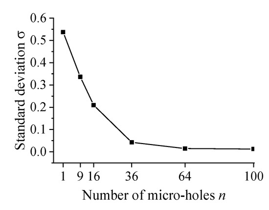 The standard deviation of load capacity fluctuation of aerostatic bearing with different number of micro-holes.