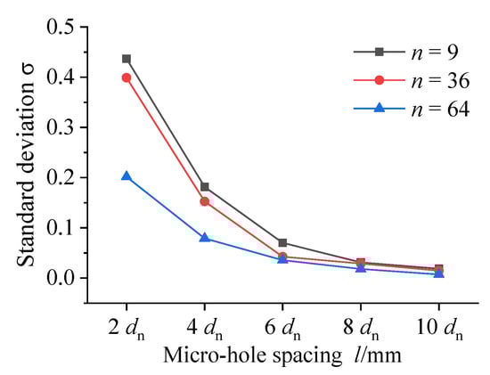 The standard deviation of load capacity fluctuation of aerostatic bearing with different spacing of micro-holes.