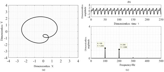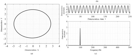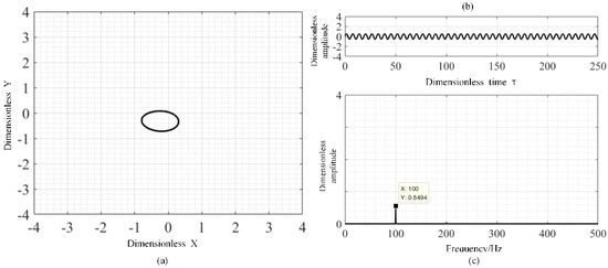 The trajectory, time history and frequency spectrum of the rotor system at 6000 rpm with unbalanced mass: (a) trajectory, (b) time history, (c) frequency spectrogram.