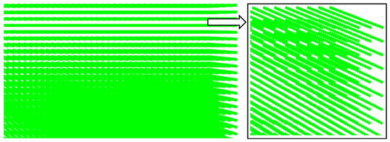 The whole model is defined with lagrangian finite elements, and only the workpiece section of the model is converted to SPH particles at the start of the analysis [50,51]. The workpiece initially meshes with the C3D8R reduced-integration elements, which are converted into PC3D particles at the start of the analysis. The workpiece consists of 369,237 PC3D particles, and SPH particle spacing is set as 0.03 mm. The visualization for SPH particles in the workpiece section is shown in Figure 4. In the case of the SPH technique, the visualization of the tool and workpiece looks the same, as shown in Figure 3. As soon as the analysis starts, the whole workpiece section consisting of lagrangian finite elements becomes converted into SPH particles, as shown in Figure 4, and the tool section remains the same, as shown in Figure 3.
