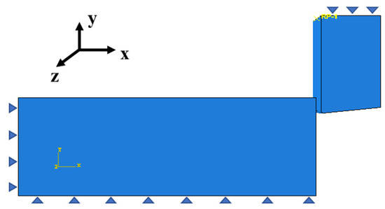 The tool motion is restricted in the y- and z-directions, and the cutting speed is given to the tool as per the requirement in the x-direction. The workpiece has been restricted from the bottom surface and cannot move in the x- and y-directions [35,36,42]. The node set consisting of all the nodes of the workpiece is given an initial temperature of 20 °C [16]. The boundary conditions for the LAG model are shown in Figure 6.