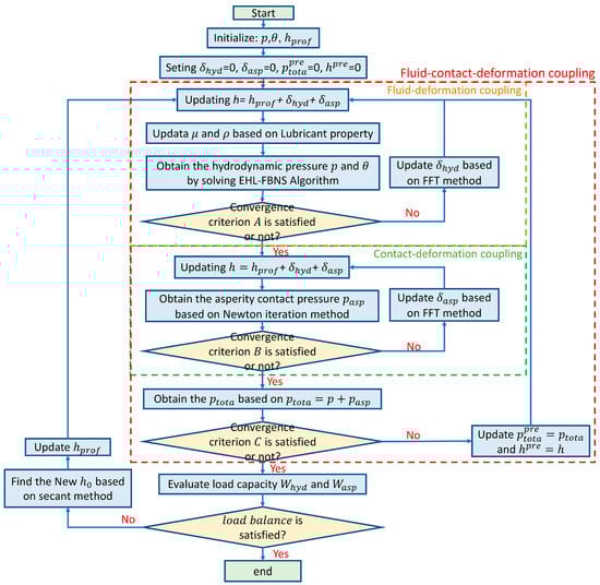 In this way, the coupling of fluid and deformation and the coupling of asperity contact and deformation can be solved separately to tackle the non-linearity of the mixed EHL problem. Later, the effect of fluid, asperity contact, and deformation should be coupled. The whole loop needs to be continued until evaluation criterion is satisfied.