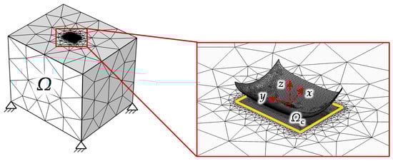 The parameter denotes the distance of the rigid surface to the elastic cubic body. The Karush–Kuhn–Tucker conditions can be modified within the wear simulation to allow for the penetration of both bodies in the amount of the local wear depth in order to consider the wear-related profile change in the contact pressure calculation. As an alternative to varying the Karush–Kuhn–Tucker conditions, the geometry function of the rigid surface can be extended by a wear term, analogous to Equation (26).