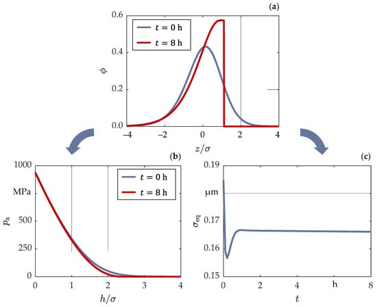The surface topography of Sugimura and Kimura [35,36,37] allows for the calculation of the time-varying change of the probability density function of the surface heights as a function of the wear depth (see Figure 5).