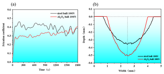(a) Friction coefficient curves; (b) wear track dimensions.