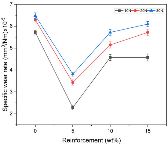 Image showing the variation of specific wear rate with varying wt% reinforcement.
