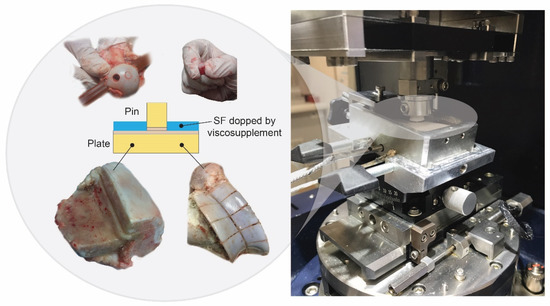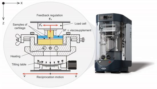 - Furmann, D.; Nečas, D.; Rebenda, D.; Čípek, P.; Vrbka, M.; Křupka, I.; Hartl, M. The Effect of Synovial Fluid Composition, Speed and Load on Frictional Behaviour of Articular Cartilage. Materials 2020, 13, 1334. [Google Scholar] [CrossRef]