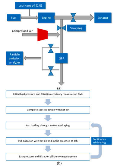 GPF test setup and procedure. (a) GPF bench test diagram, (b) GPF test procedure.