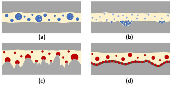 Different mechanisms for improving tribological properties using nanoparticles (a) rolling mechanism; (b) mending mechanism; (c) polishing mechanism; (d) protective film [8] (with the modification of the authors).