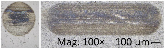 This plastic deformation offered positive tribological properties to the tribological system, it increased the area of the contacting surfaces resulting in a lower surface pressure of the tribological system. Compared with previous experiments with the same tribological methodology [18,26] this kind of plastic deformation could not be observed in the presence of another nanoceramic doped lubricant samples.