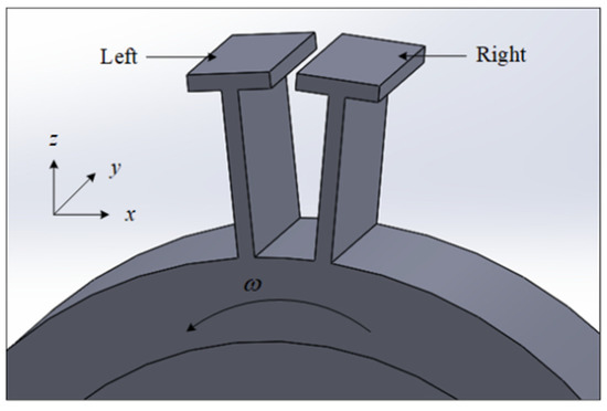 In the aero-engine, all the shrouded blades are set up in a circle which can be considered as a symmetric structure. In order to simplify the dynamic model, two adjacent shrouded blades are selected and the structure of the blades discussed in this paper is shown in Figure 1, where the orthogonal coordinate system attached to the bladed disc is defined with three orthogonal directions, namely tangential direction (), axial direction (), and radial direction ().