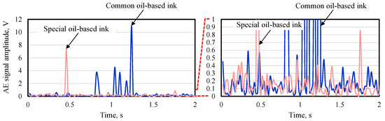 Changes in AE signal amplitude for different ink types.