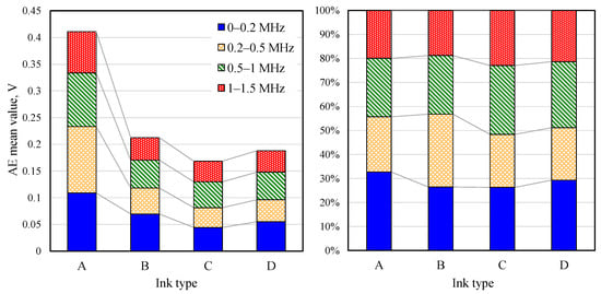 3.2. Changes in AE Signal Frequency Depending on the Type of Ink
