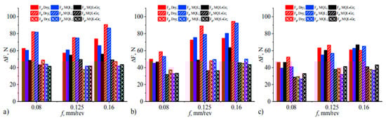 Average values of cutting force variation at different cooling conditions: (a) (b) ; (c) [], License Number: 5287320340171.