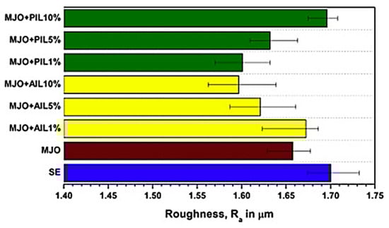 Arithmetic average of surface roughness profile on machined surfaces lubricated with all lubricant samples [].