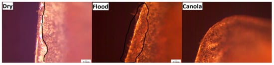 Paul and Pal [] conducted a study on mild steel turning with an HSS tooltip. They measured the cutting temperature and surface roughness of dry, MQL, and flooding cooling conditions. A universal water-miscible coolant SOL-CUT-1000 was utilized as the flood coolant. The MQL was run using neem and karanja oils. It was found that surface roughness was better compared to dry and flood operating conditions, using both neem and Karanja oils with increasing feed rate or depth of cut variance. The cooling results of vegetable oils are comparable with flood cooling for a lower depth of cut. For a high depth of cut, the performance varied slightly, and the effectiveness of neem oil was better than that of karanja oil between the two types of vegetable oil.