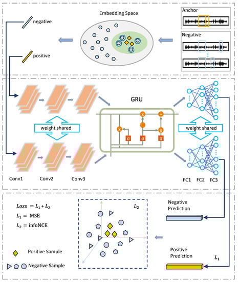 - Van den Oord, A.; Li, Y.; Vinyals, O. Representation learning with contrastive predictive coding. arXiv 2018, arXiv:1807.03748. [Google Scholar]