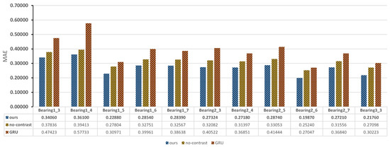 HNCPM has the best superiority on bearing 2_6, which is 0.05 lower than the no-contrast model and 0.07 lower than the GRU model. In addition, the model has the largest MAE value on bearing 1_4, which is 0.03 and 0.22 lower than the no-contrast and GRU model, respectively.