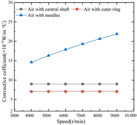 In the working of open bearings, it is not only necessary to consider the convection of the lubricating oil on the surface of the bearing component, but also to consider the convection between air and the surface of the component. he convective coefficient between the bearing components and the heat transfer medium at different speeds may be calculated. The results are shown in Figure 7 and Figure 8.