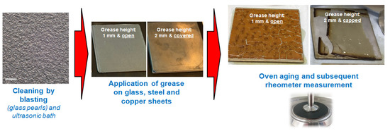In the last few years, there have been a few reports of research projects dealing with the modification of a lubricating grease under thermal–oxidative stress. It is well known that the flowability of a grease increases with increasing temperature, which favors lubricity. However, the risk of oxidative and thermal degradation increases with increasing temperature and residence time [12,13].