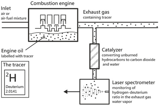 The use of a stable, nonradioactive isotope of hydrogen (deuterium (2H, D)) as a tracer provides the unique opportunity to use molecules of hydrocarbons, which are the basic components of the lube oil, as a tracer. The hydrogen atoms in hydrocarbon molecules can be exchanged for deuterium. This modification has a negligible effect on the physical and chemical properties of the molecules.