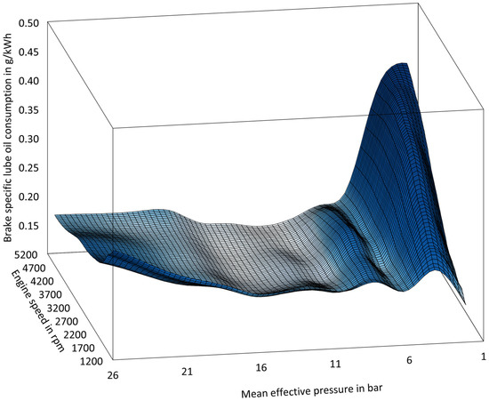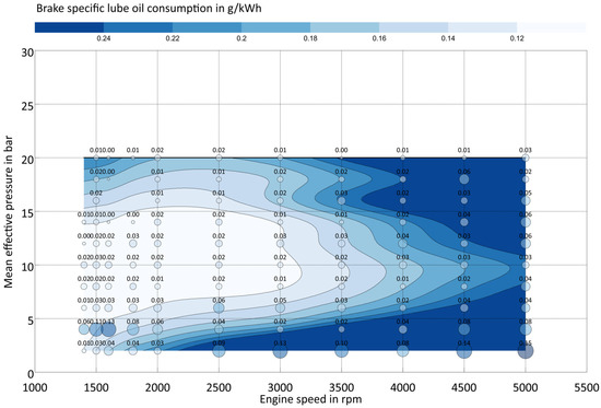 The lube-oil-consumption method has already shown universal applicability in terms of the engine size, fuel, and the combustion concept. The method showed good reproducibility not only for stationary measurements, but also for the compilation of complete engine-characteristic maps, as depicted in Figure 3.