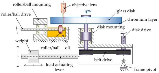 Mechanical layout of the used optical EHL tribometer based on [16].