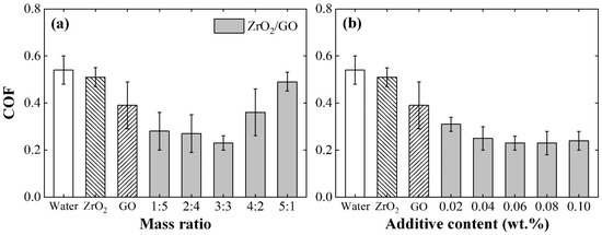 - Huang, S.; Lin, W.; Li, X.; Fan, Z.; Wu, H.; Jiang, Z.; Huang, H. Roughness-dependent tribological characteristics of water-based GO suspensions with ZrO2 and TiO2 nanoparticles as additives. Tribol. Int. 2021, 161, 107073. [Google Scholar] [CrossRef]
