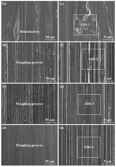 3.4. Worn Surface Characteristics
