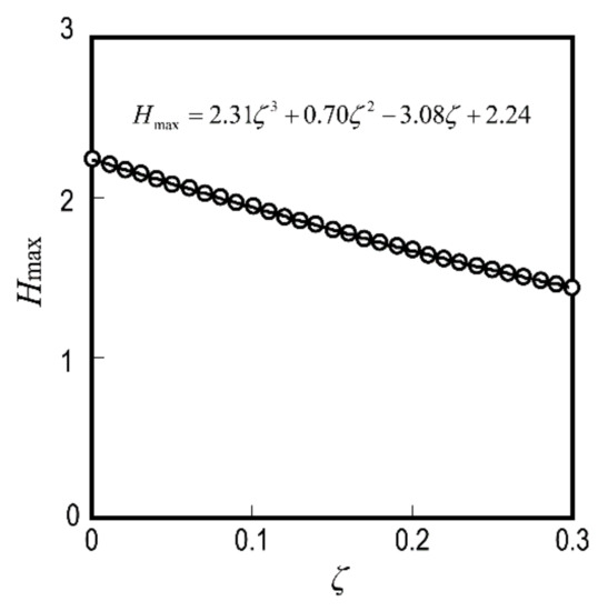 Additionally, we calculated a best fit curve for the results from Harik and Issa [20] to determine the ζ dependence of Hmax, as shown in Figure 6. We obtained the following formula: