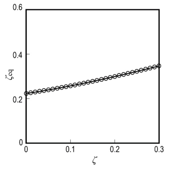 From Equations (31) and (32), the equivalent damping ratio can be written as a function of the damping ratio, as follows: