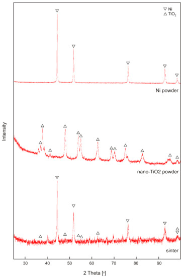 - The obtained sinters are characterized by an even distribution of TiO2 particles in the form of agglomerates. The nickel matrix creates a continuous structure that is free of cracks.