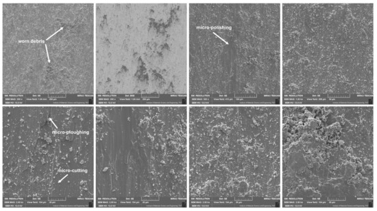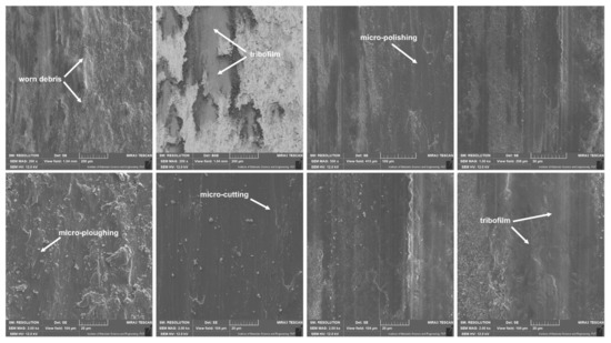 Worn surface of counter-samples after friction wear tests at room temperature, SEM.